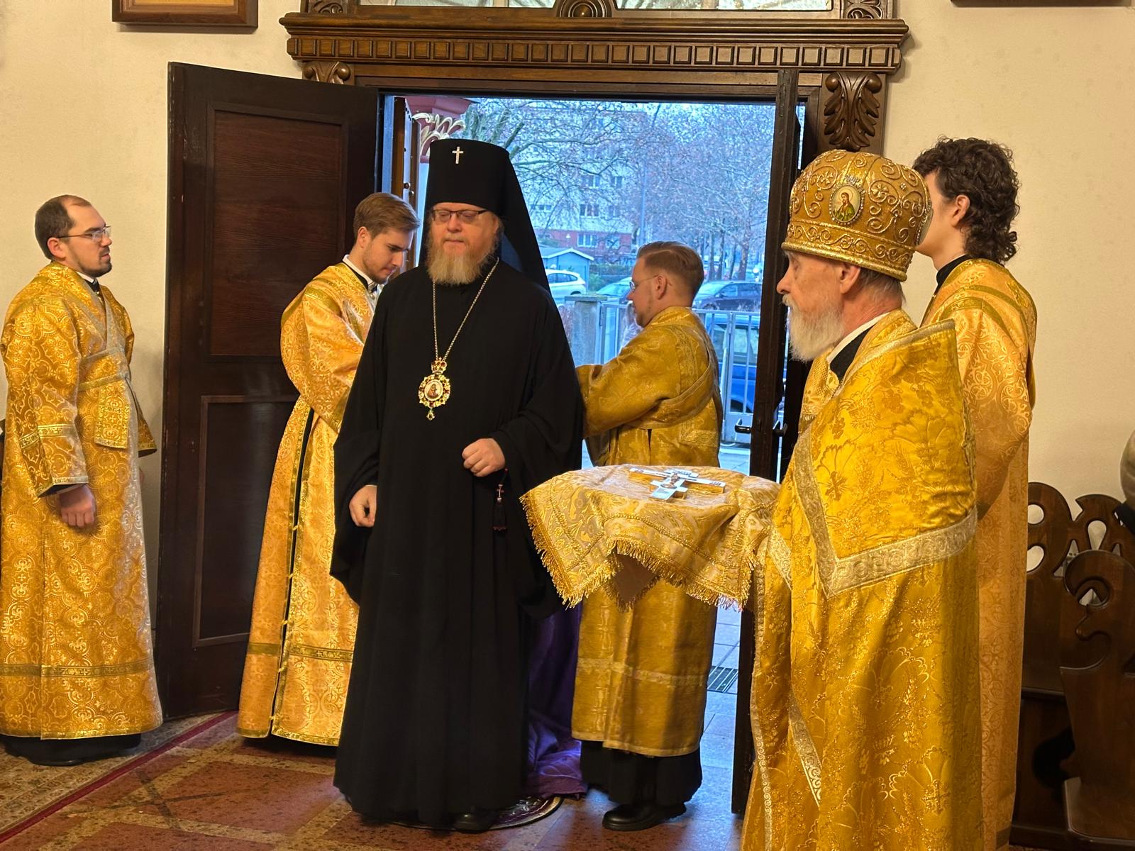 Seiner Eminenz konzelebrierten: Diözesansekretär und Dompropst Erzpriester Mikhail Divakov, Priestermönch Hilarion (Reznichenko), Erzdiakon Erzdiakon Witalij Sadakow und Erzdiakon Archil Chkhikvadze.