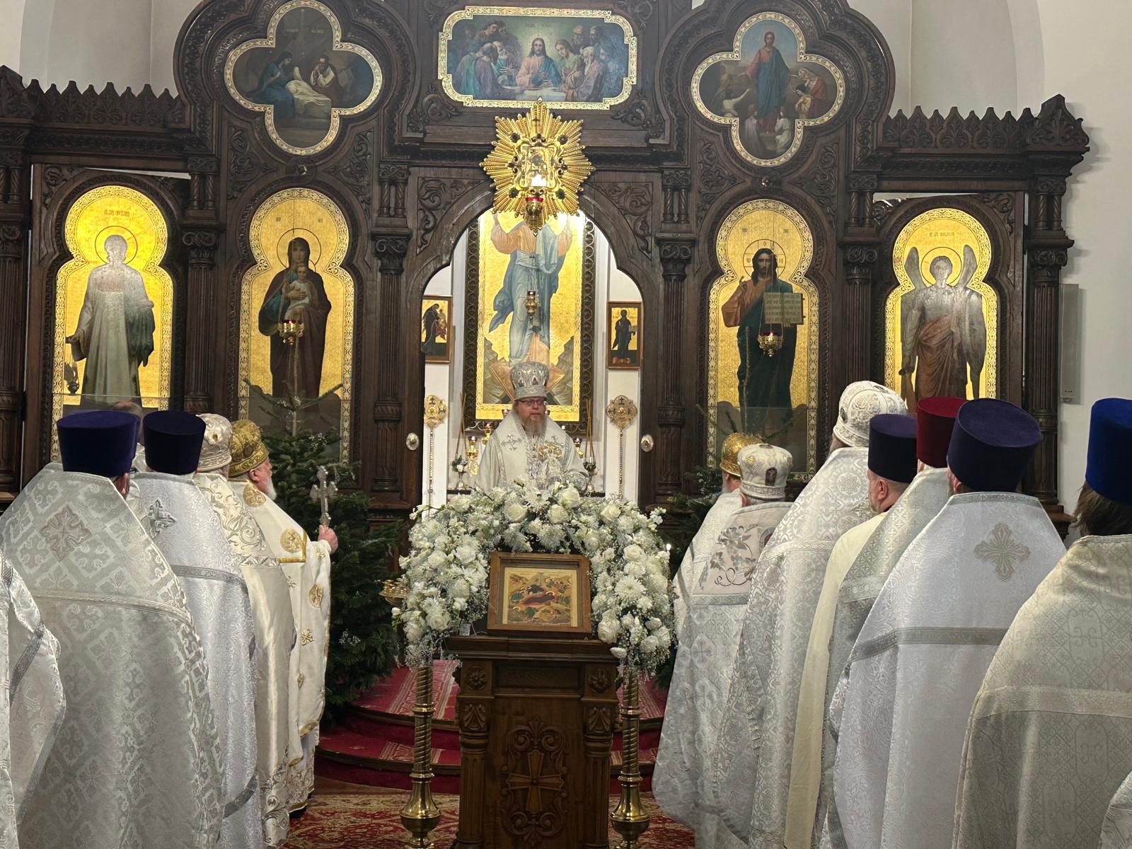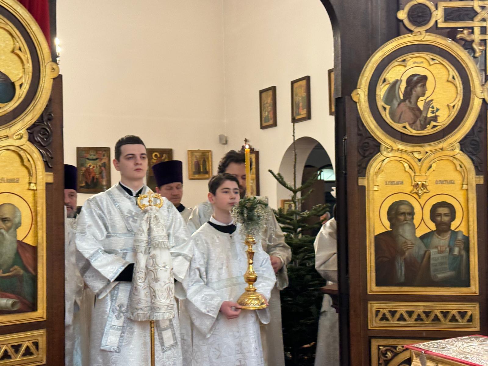 09. Januar 2025 – Am Tag des Gedenkens an den ersten Märtyrer und Erzdiakon Stephanus feierte Erzbischof Tichon, begleitet vom Klerus der Diözese, die Göttliche Liturgie in der Kathedrale zur Auferstehung Christi in Berlin.