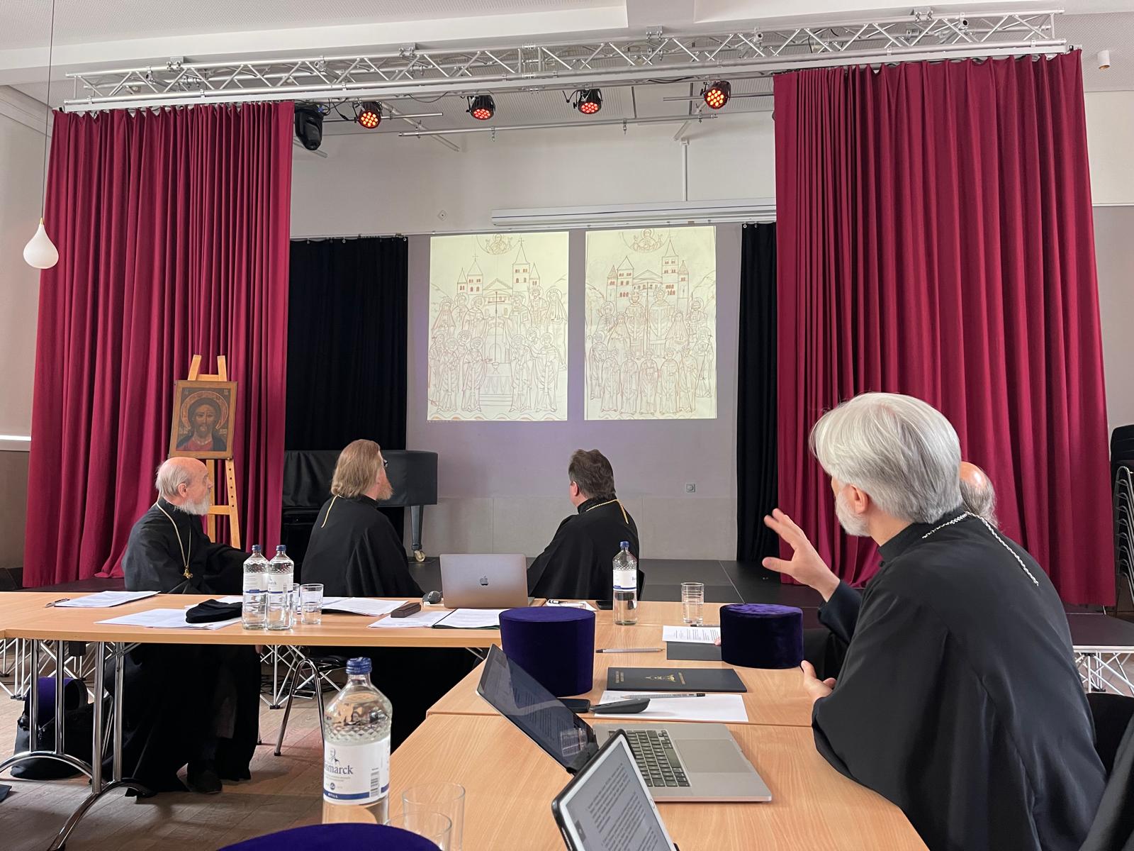 Die Sitzung des Diözesanrats wurde von Erzbischof Tichon von Ruza eröffnet, der die Teilnehmer der Veranstaltung mit einem Eröffnungswort begrüßte. Anschließend wurden die Berichte von Erzpriester Alexander Bertasch und Erzpriester Sergej Baburin über die Umsetzung der Resolution des Diözesanrats vom 2. Oktober 2023 zur Erstellung von liturgischen und hagiografischen Texten sowie zur Ikonenmalerei der neu verherrlichten Heiligen, die im deutschen Land erstrahlten, gehört.