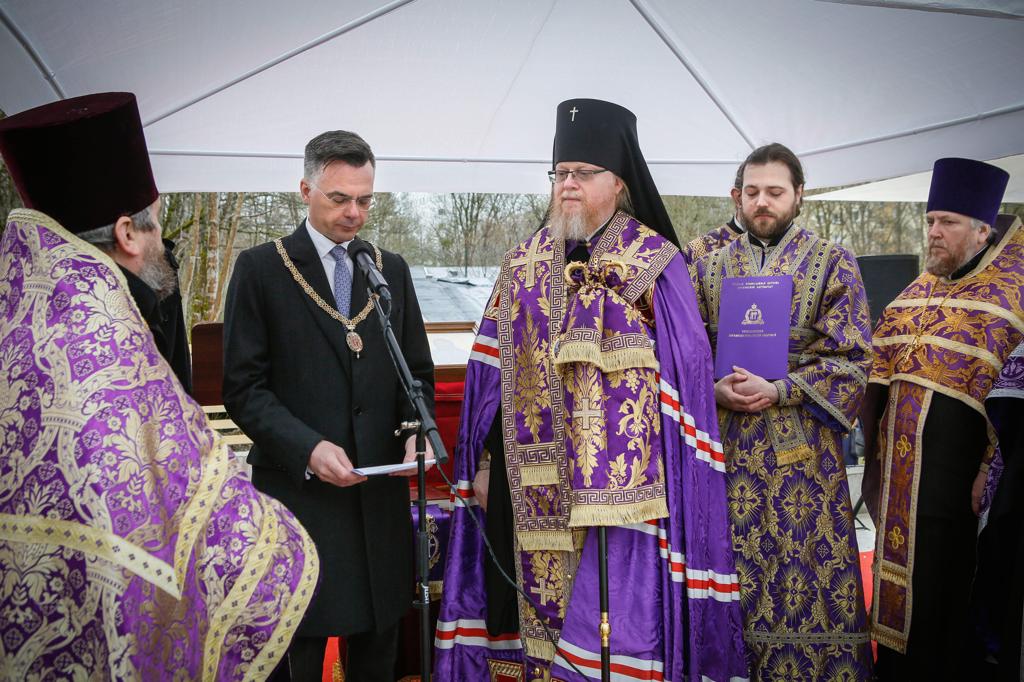 Ich gratuliere Ihnen herzlich zu einem bedeutenden Ereignis – der Grundsteinlegung für die Kirche zu Ehren des hl. Vorläufers und Täufers des Herrn im Nordosten von München. Den Beginn dieses Bauvorhabens erwarteten orthodoxe Christen wie auch viele andere Menschen, denen dies nicht gleichgültig ist. Es ist bekannt, dass jedes gottgefällige Werk, umso mehr der Bau eines Gotteshauses, besondere Anstrengungen erfordert. Daher versammelten wir uns, um im Gebet Gottes Segen für den Beginn des Baus der Holzkirche zu erflehen.