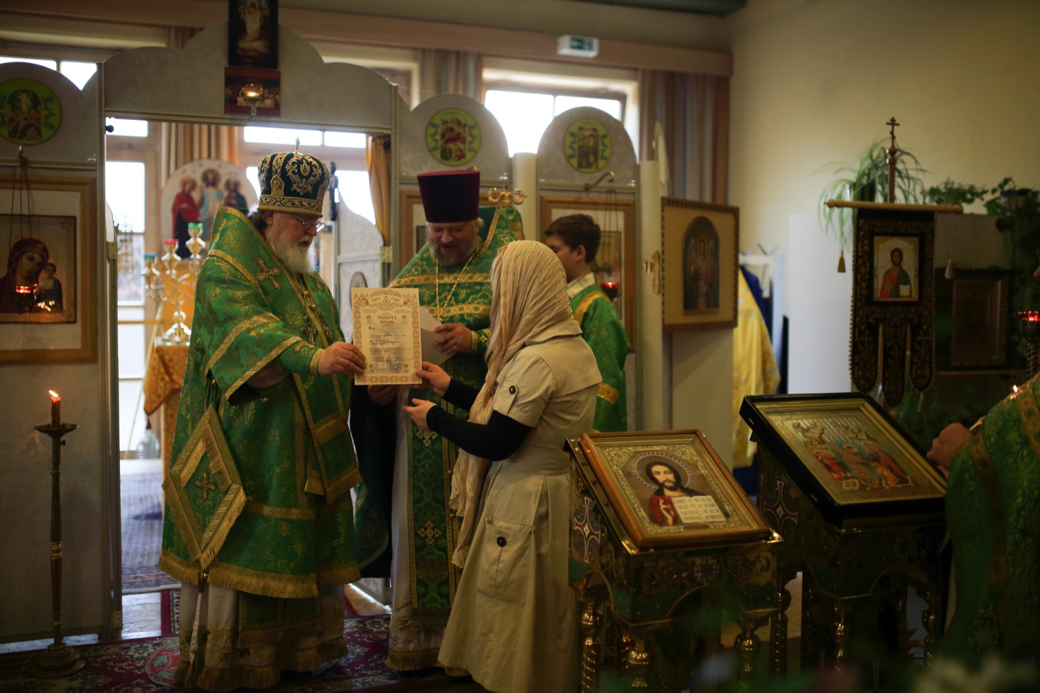 В заключение Владыка наградил благословенными архипастырскими грамотами усердных тружеников храма, а также поблагодарил хор за прекрасное украшение праздника.
