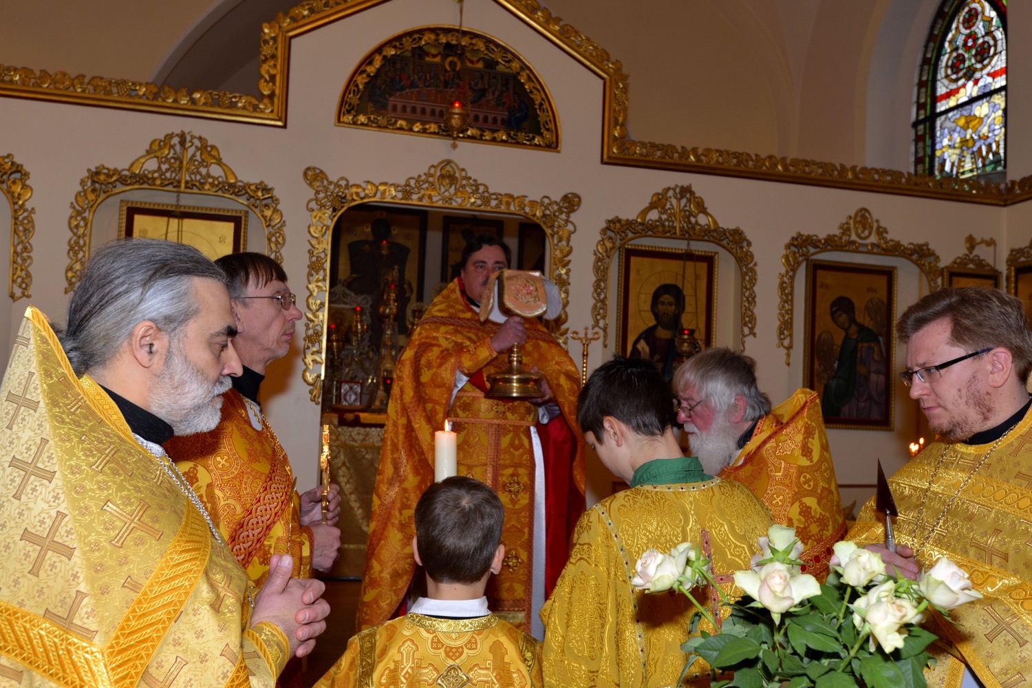 02 декабря 2014 - Игумен Максим (Шмидт) совершил первые богослужения в храме Покрова Пресвятой Богородицы г. Дюссельдорфа в качестве исполняющего обязанности настоятеля ставропигиального прихода