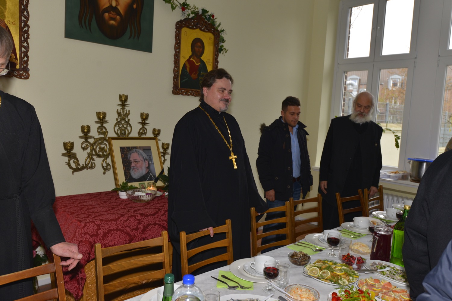 После трапезы, устроенной заботливыми руками прихожан, и. о. настоятеля имел возможность провести краткие совещания с клиром прихода, с уполномоченным исполнительным секретарем Постоянного Представительства РПЦ в Германии монахиней Ангелиной (Хойзер), казначеем Представительства, а также генеральным секретарем Православного епископского собрания в Германии иподиаконом Николаем Тоном.