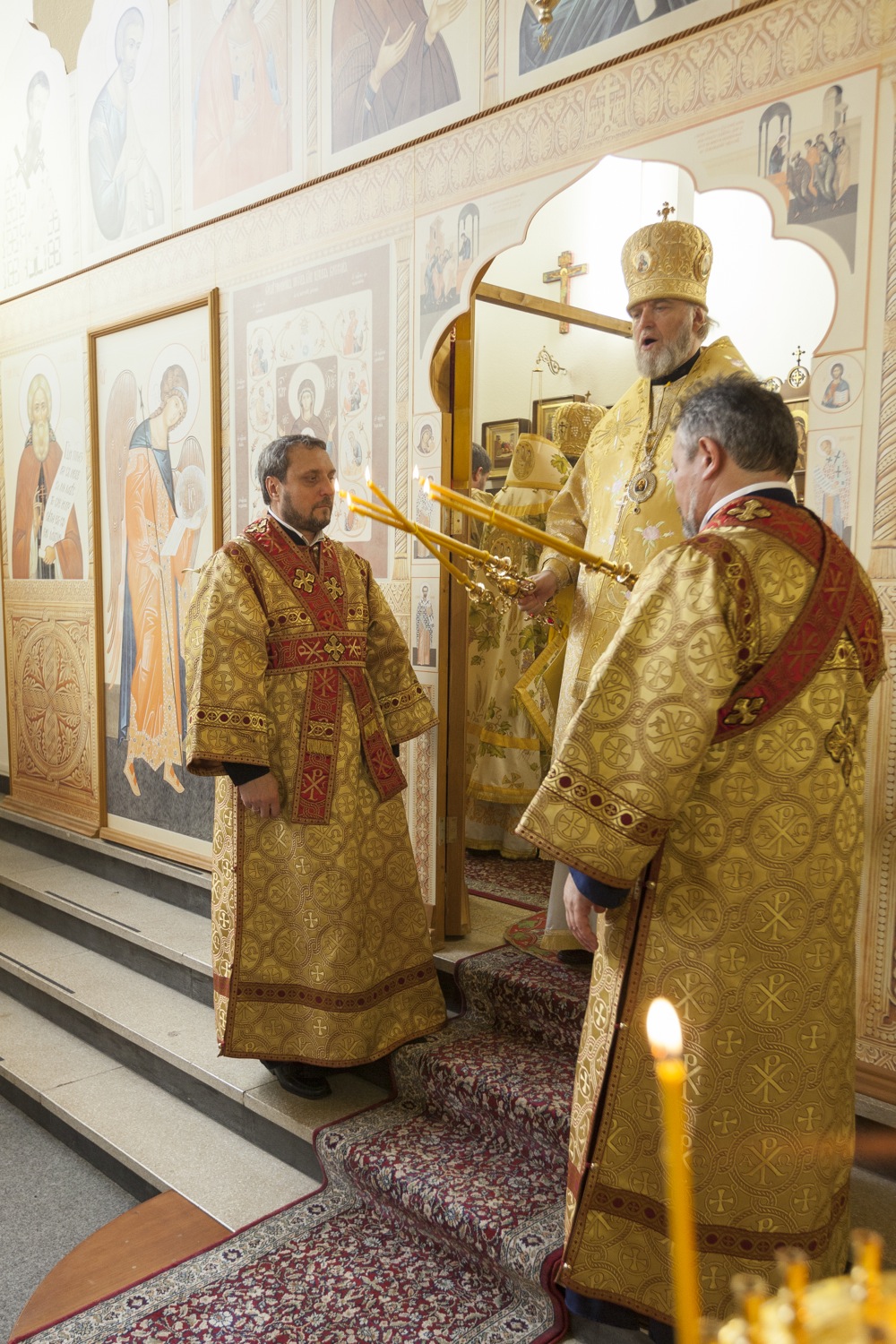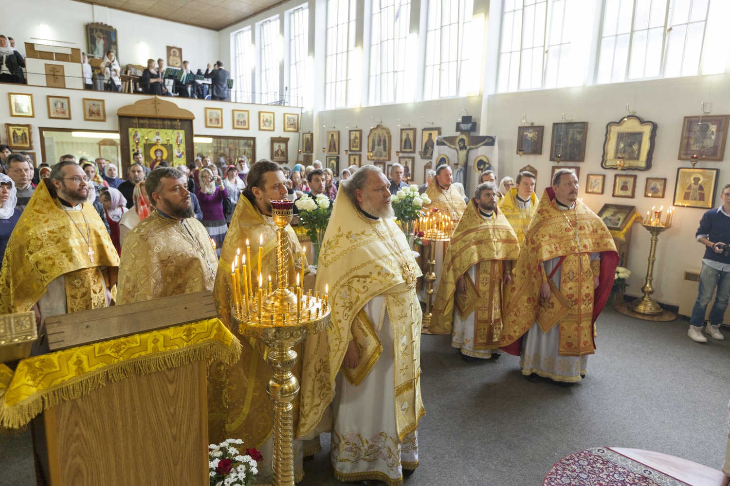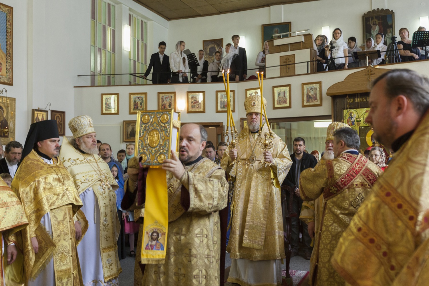 Во время литургии были совершены хиротесии: чтец прихода был поставлен в иподиаконы, два пономаря были пострижены во чтецы. После чтения Евангелия архиепископ Берлинский и Германский Феофан произнес назидательную проповедь. По окончании литургии он, как правящий архиерей, обратился с приветственным словом ко всем присутствующим. С ответным словом выступил митрополит Герман и преподнес в дар архиепископу икону Божией Матери.