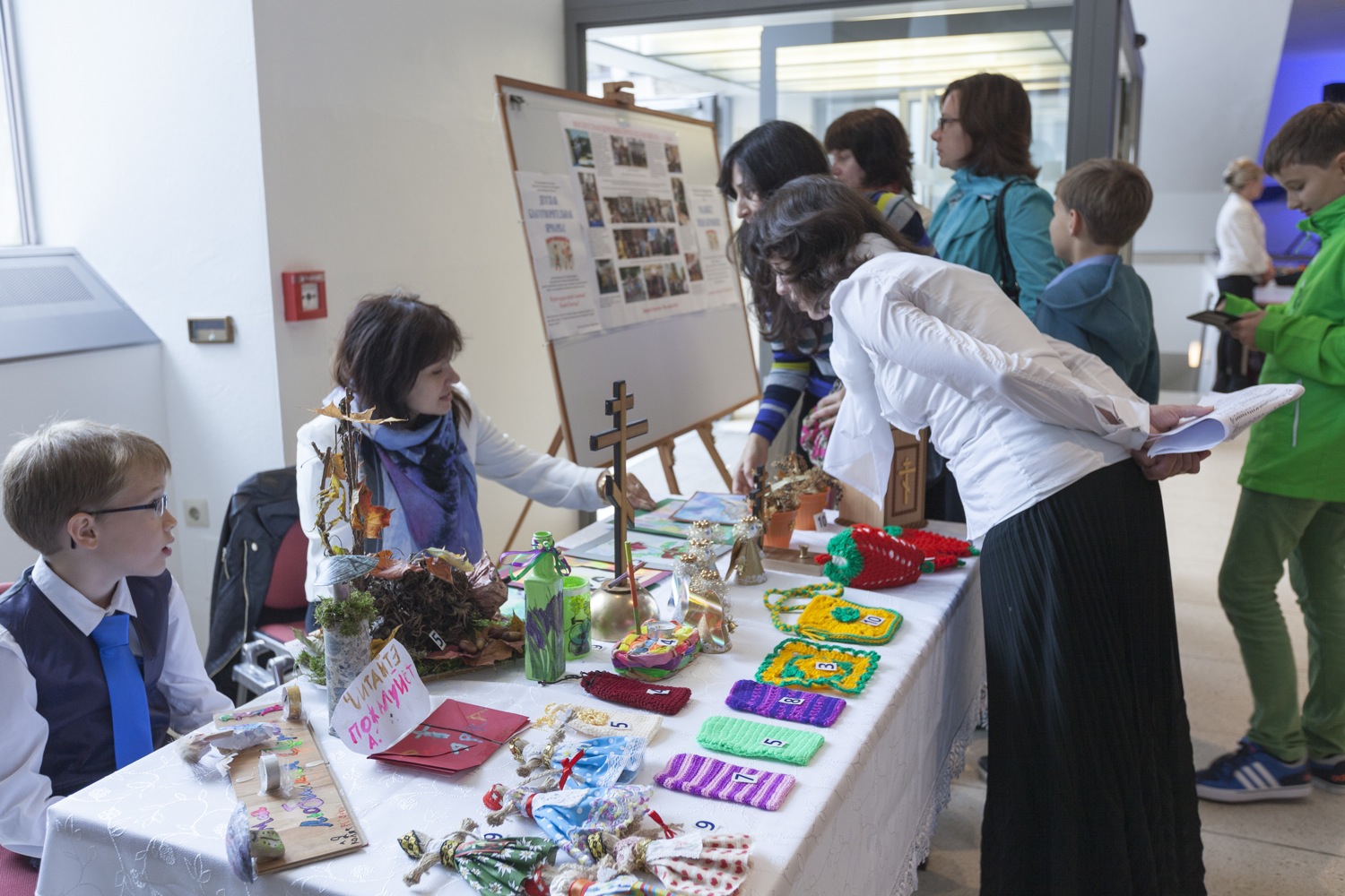 Присутствующие на приеме гости и прихожане имели возможность ознакомиться с работами и церковными проектами иконописца Дмитрия Хартунга из г. Штутгарта, представленными тут же на организованной к приходскому юбилею выставке. А ученики приходской Воскресной школы устроили благотворительную творческую ярмарку изделий, сделанных своими руками.