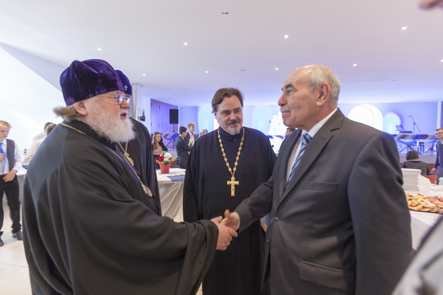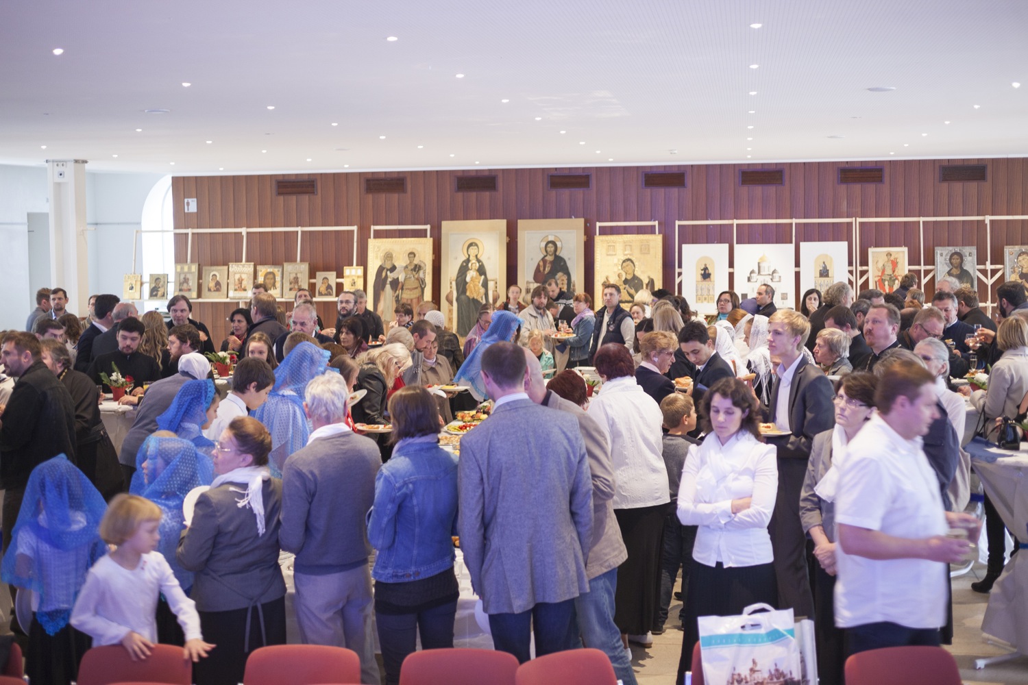 После богослужения от имени Приходского совета был дан прием. В празднично украшенном зале выставочного центра Корнхауз настоятель ульмского прихода игумен Максим (Шмидт) вместе с прихожанами встречали приглашенных гостей, среди которых были обер-бургомистр г. Ульма Иво Гёнер, декан католической Церкви Матиас Хамбюхер, представители различных христианских конфессий.