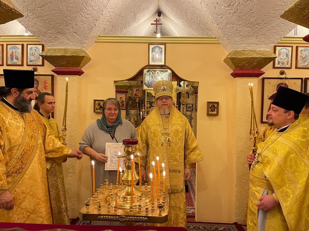 По окончании Литургии в связи с празднованием памятной даты прихода архиепископ Тихон удостоил ряд прихожан благословенных архиерейских грамот.
