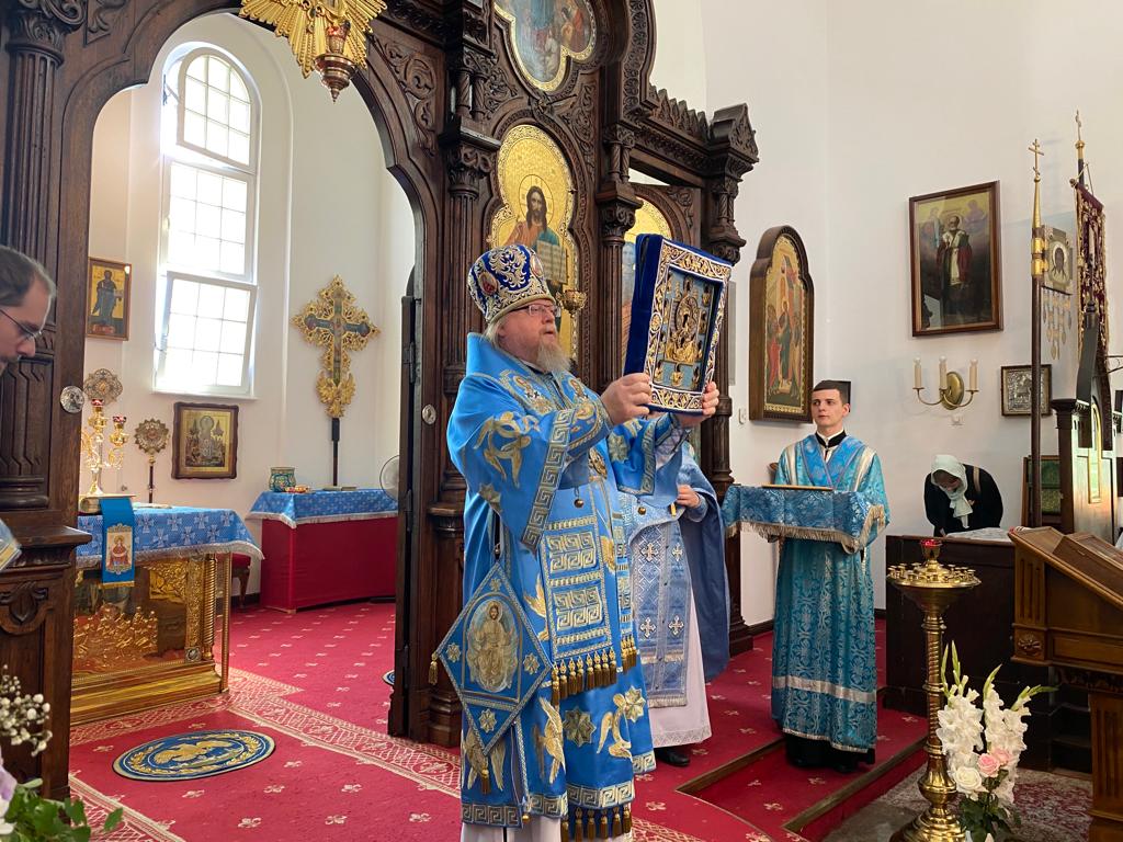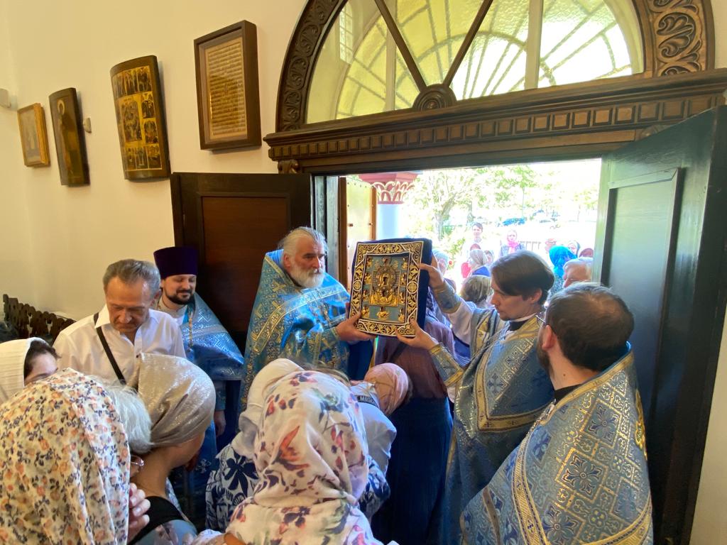 Перед началом Божественной литургии в собор была принесена Курская Коренная икона Божией Матери «Знамение» — историческая святыня русского зарубежья, находящаяся на постоянном хранении в синодальном Знаменском соборе Русской Православной Церкви Заграницей в Нью-Йорке (США).