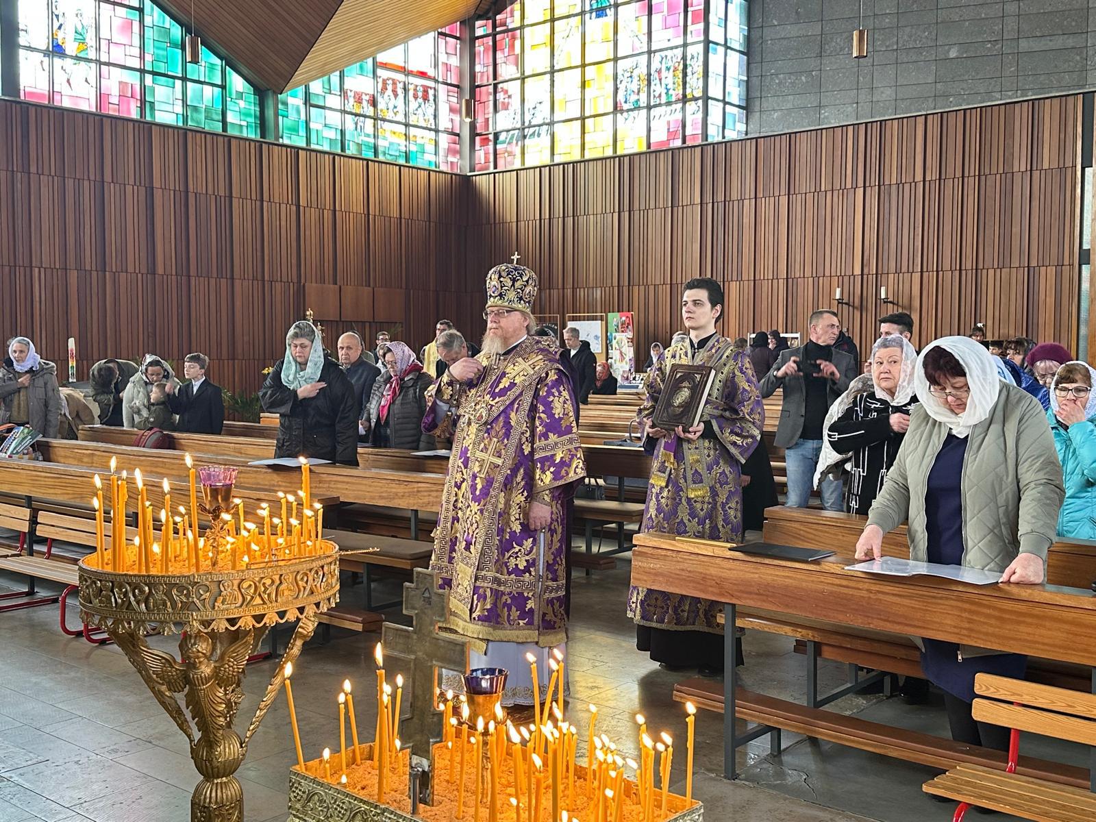 22 марта 2025 года, в субботу 2-ой седмицы Великого поста, день памяти сорока мучеников Севастийских, архиепископ Рузский Тихон, управляющий Берлинско-Германской епархией, совершил Божественную литургию в приходе в честь Владимирской иконы Божией Матери г. Альтёттинга.