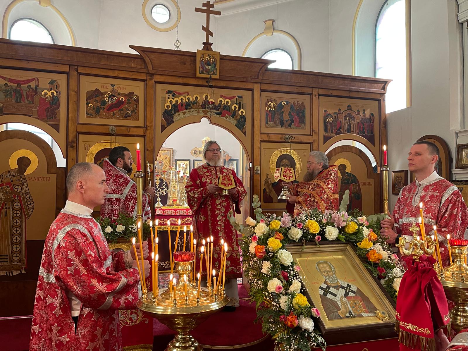 22 мая 2024 года, в среду 4-й по Пасхе, день памяти перенесения мощей святителя Николая, архиепископа Мир Ликийских чудотворца в Бари, архиепископ Рузский Тихон, управляющий Берлинско-Германской епархией, совершил Божественную литургию в храме во имя святителя Николая в Кемптене по случаю престольного праздника.