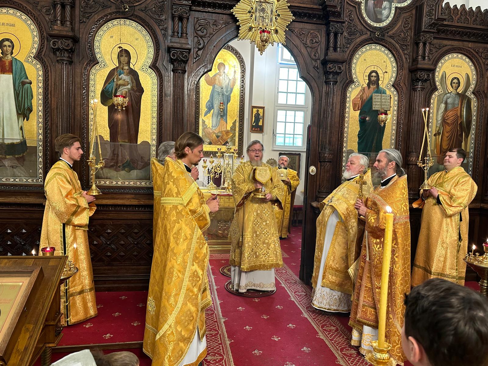 6 октября 2024 года, в Неделю 15-ю по Пятидесятнице, день памяти Всех святых в земле Германской просиявших, архиепископ Рузский Тихон, управляющий Берлинско-Германской епархией совершил Божественную литургию в кафедральном соборе Воскресения Христова г. Берлина.