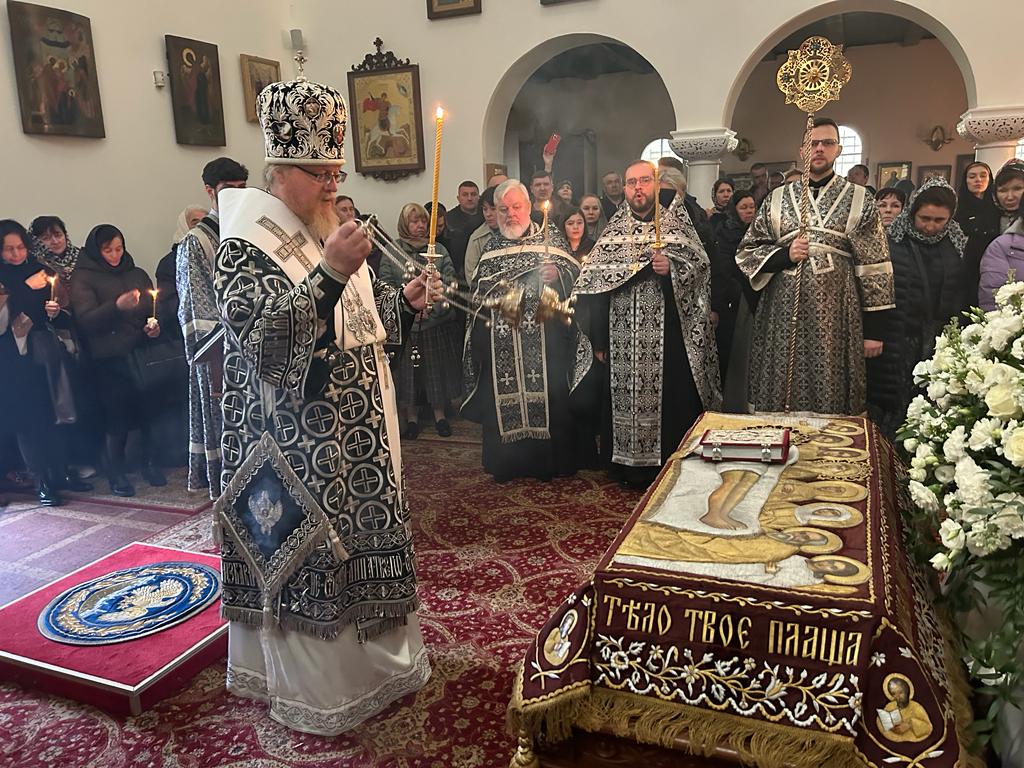 После полудня была совершена великая вечерня, на которой при пении тропаря «Благообразный Иосиф, с древа снем Пречистое Тело Твое», из алтаря на середину храма была перенесена Святая Плащаница с изображением погребения Христа. Затем управляющий епархией с собором духовенства совершил малое повечерие, на котором был прочитан канон «О распятии Господа и на плач Пресвятой Богородицы».