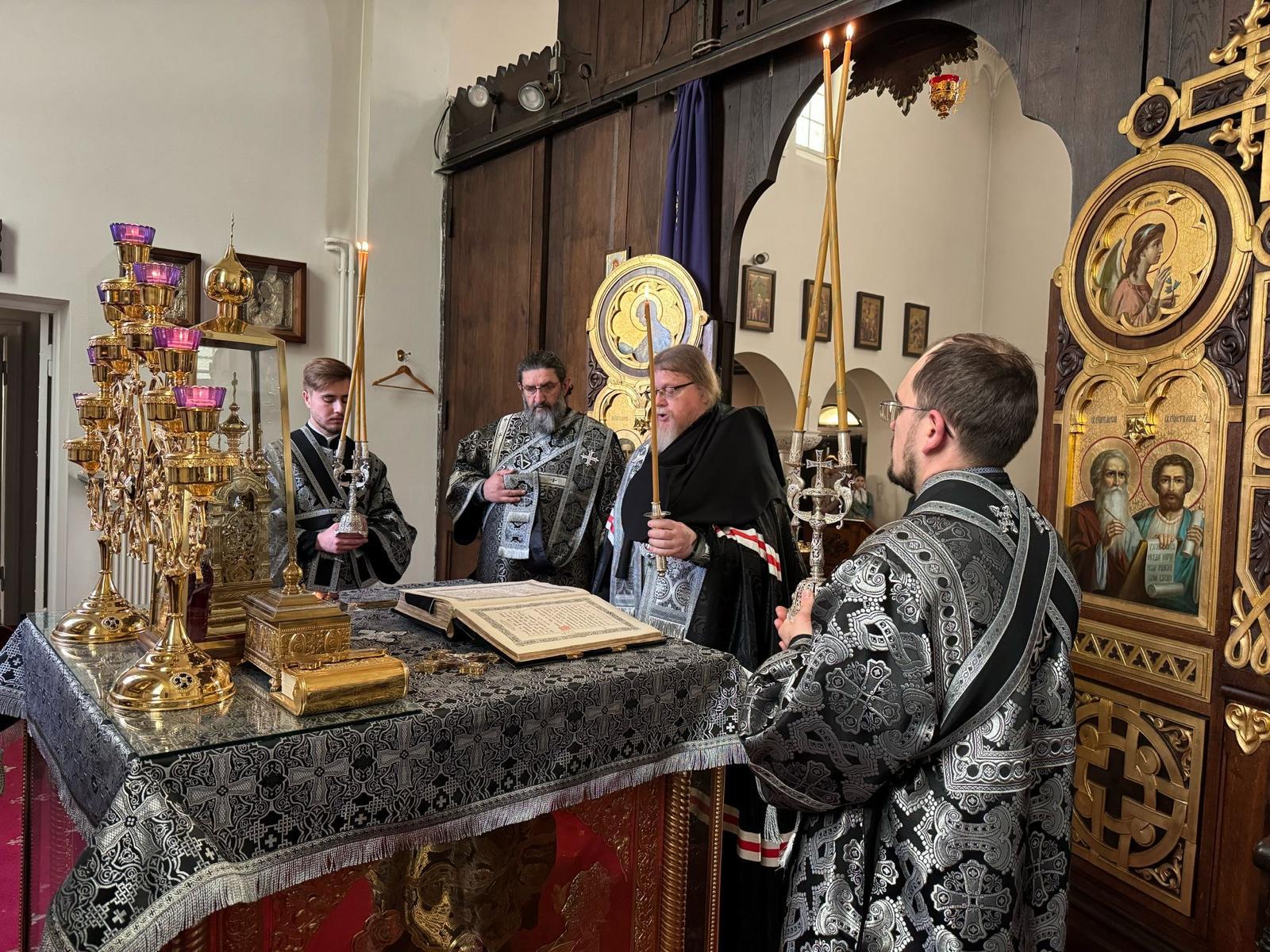 14-16 апреля 2025 года, в понедельник, вторник и среду Страстной седмицы архиепископ Рузский Тихон, управляющий Берлинско-Германской епархией, совершил последование великопостных часов, изобразительных и Литургию Преждеосвященных Даров в кафедральном соборе Воскресения Христова г. Берлина и крестовом храме во имя преподобного Сергия Радонежского в Карлсхорсте (Берлин).