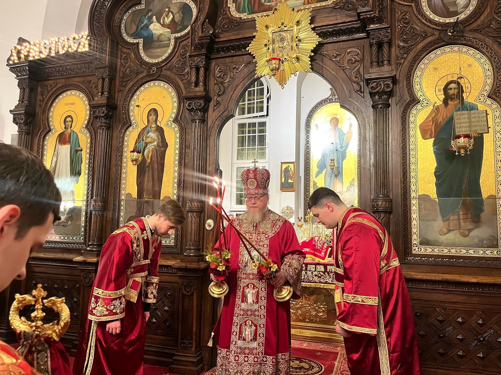 Berliner Diözese der Russischen Orthodoxen Kirche (KdöR) > Aktuell > (Русский) В праздник Воскресения Христова архиепископ Тихон возглавил пасхальные богослужения в Воскресенском соборе г. Берлина