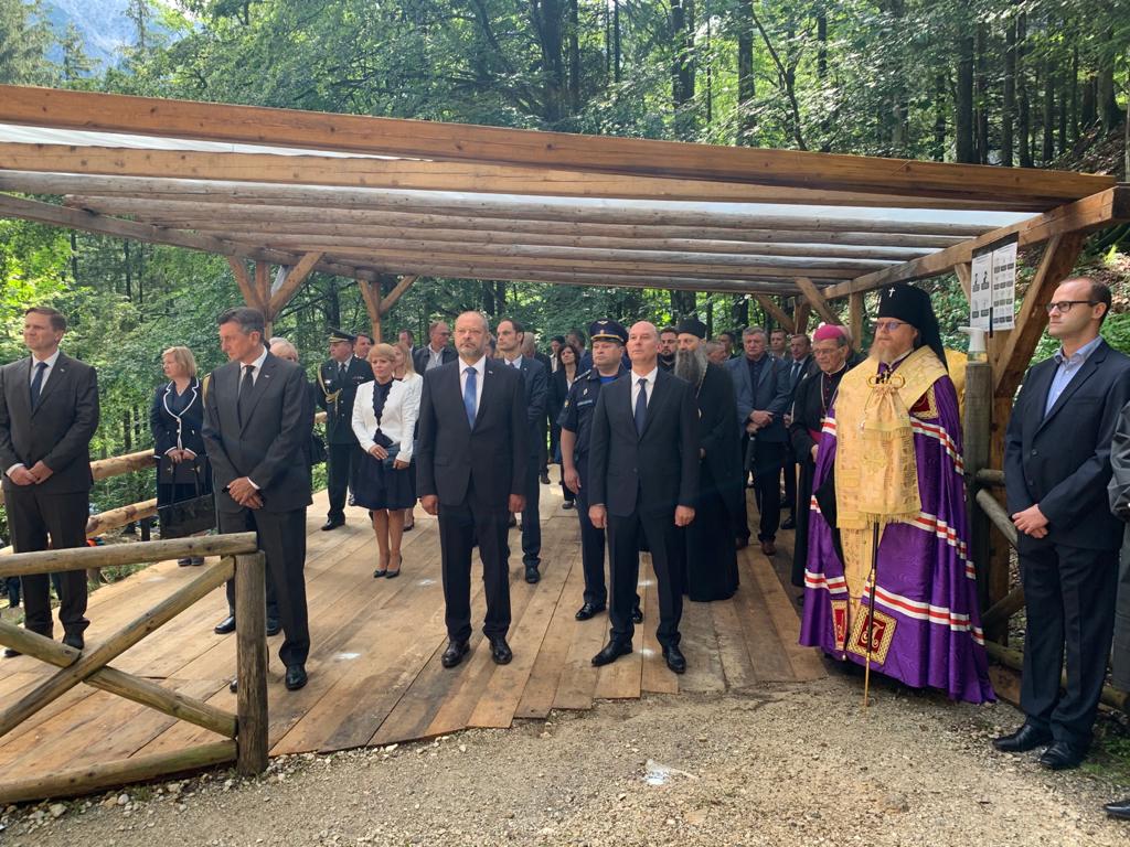 По традиции Президент Республики Словения Б. Пахор и Чрезвычайный и Полномочный Посол Российской Федерации в Республике Словении Т. Р. Эйвазов возложили венки к обелиску «Сынам России», расположенному возле часовни.
