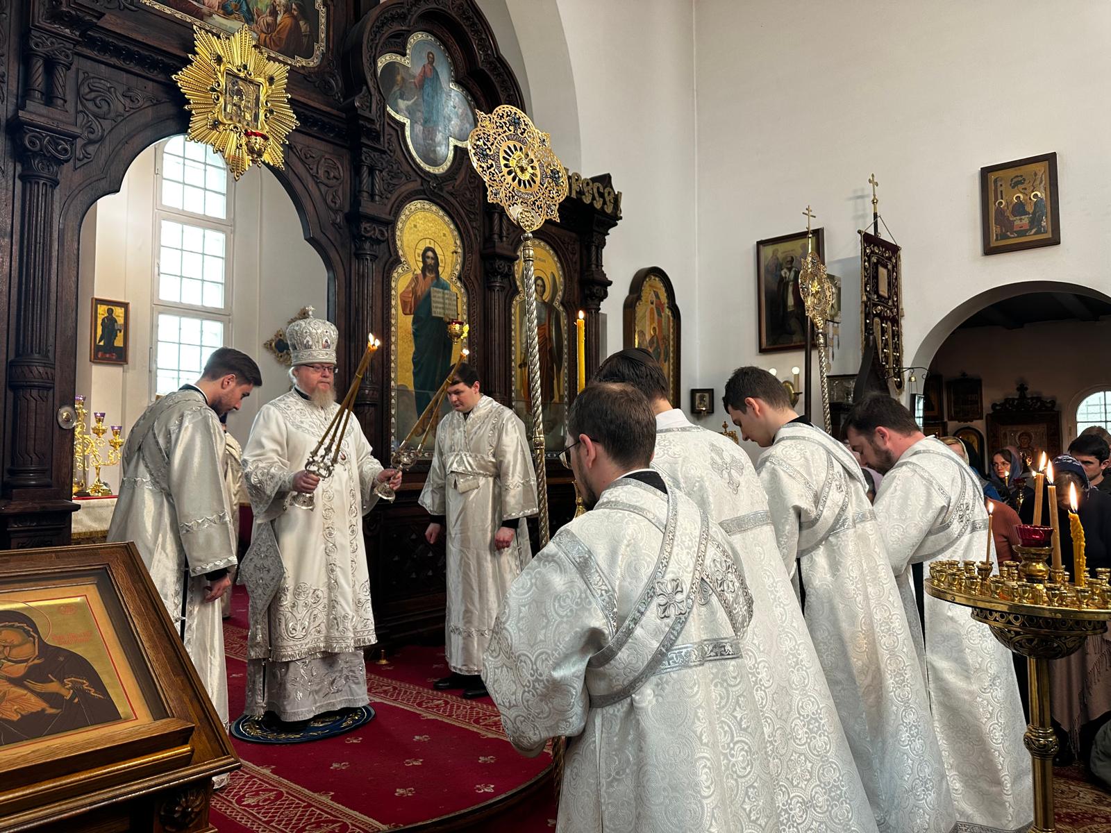 Berliner Diözese der Russischen Orthodoxen Kirche (KdöR) > Aktuell > (Русский) В Великую Субботу архиепископ Рузский Тихон совершил вечерню и Литургию святителя Василия Великого в соборе Воскресения Христова в г. Берлине
