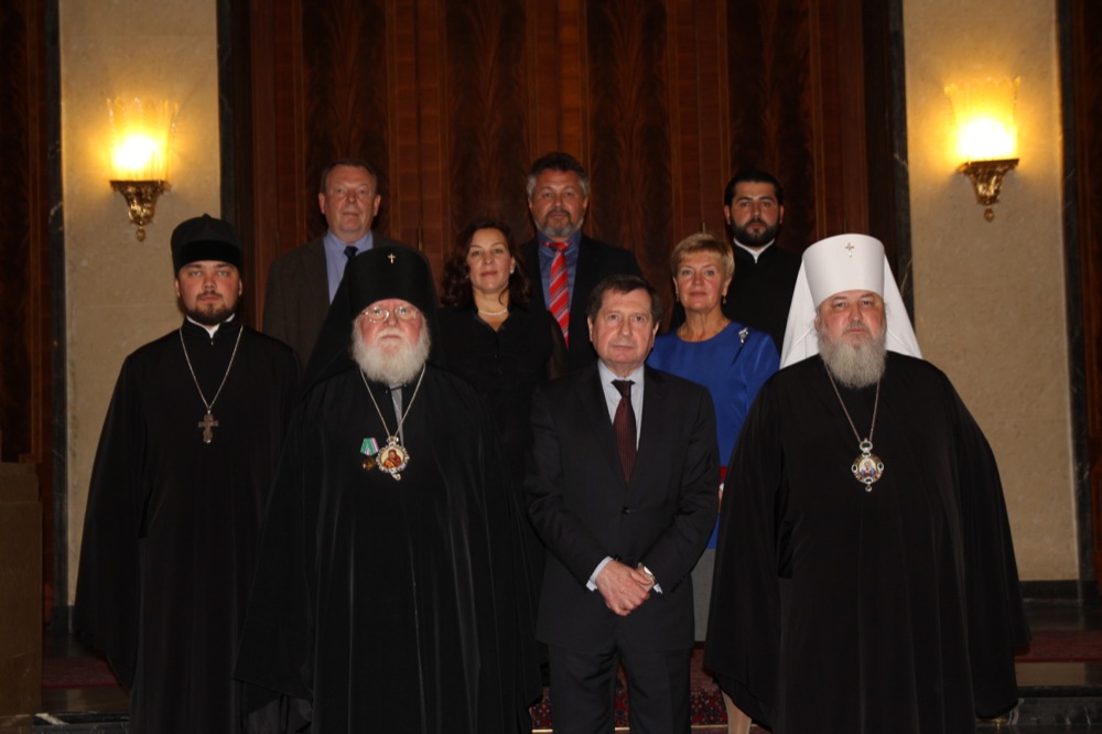 В этот же день состоялся прием делегации в Российском посольстве. В ходе встречи состоялась беседа с послом Российской Федерации в ФРГ Грининым В.М. о деятельности казачьих обществ в Германии и их взаимодействии с Русской Православной Церковью. Во встрече принимали участие Митрополит Ставропольский и Невинномысский Кирилл, Архиепископ Берлинский и Германский Феофан, сотрудники посольства Сазонов В.М. и Старикович Г.В., руководитель Российского Центра науки и культуры Ксенофонтов О.Ю., ответственный секретарь Синодального комитета по взаимодействию с казачеством священник Тимофей Чайкин, начальник отдела поддержки русских школ Управления сотрудничества в сфере образования Россотрудничество МИД России Чередниченко Наталья Георгиевна, руководитель службы протокола митрополита Ставропольского и Невинномысского диакон Василий Змэу, руководитель учебно-методического отдела СКВК Котина Ирина Алексеевна.