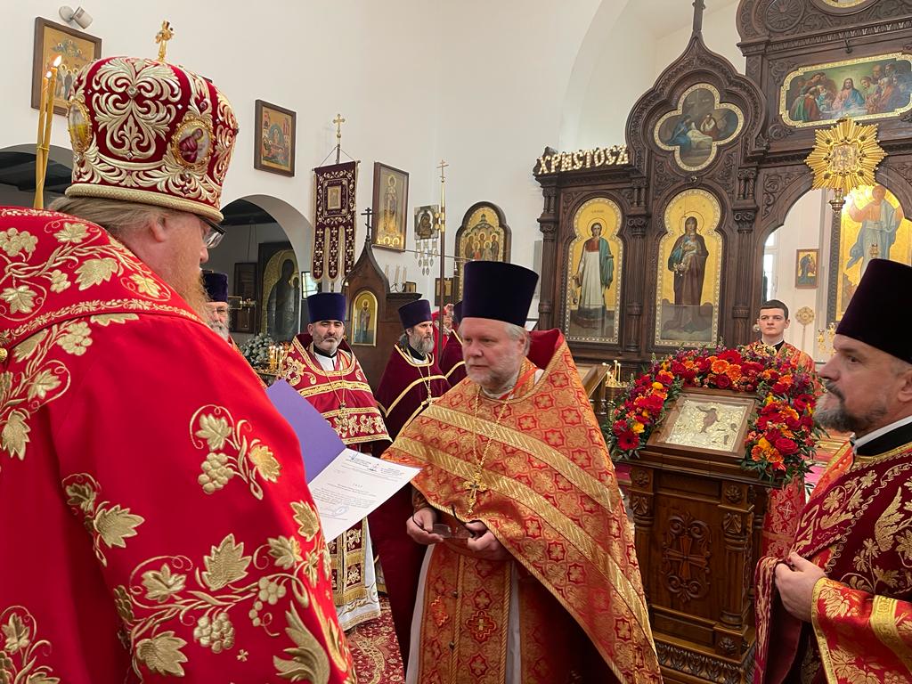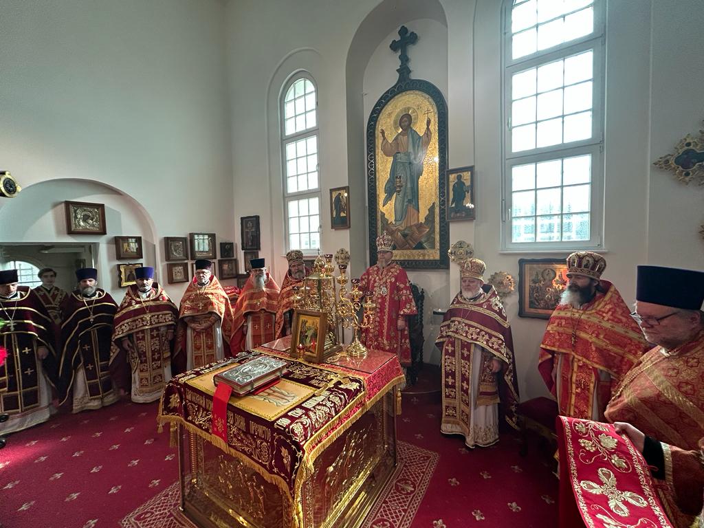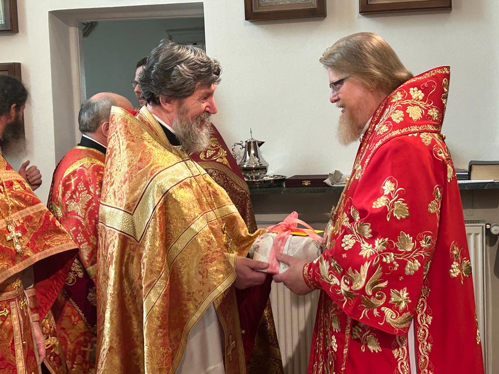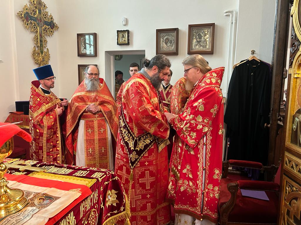 Его Высокопреосвященству сослужили протоиерей Георгий Антонюк, протоиерей Борис Устименко, протоиерей Владимир Нойманн, протоиерей Михаил Дронов, протоиерей Виктор Савик, протоиерей Алексий Томюк, протоиерей Михаил Рар, протоиерей Виктор Алексеев, протоиерей Сергий Бабурин, протоиерей Иоанн Дорош, протоиерей Илья Чирин, протоиерей Вадим Садовой, иерей Евгений Мурзин, иерей Максим Юдаков, иерей Олег Бельтек (Санкт-Петербургская епархия), протодиакон Виталий Садаков, диакон Арчил Чхиквадзе.